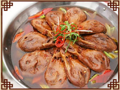 鴨頭集鴨之精華,對人體有良好的補(bǔ)腦、養(yǎng)血安神之功效!案慑侙嗩^”是由川菜創(chuàng)新出的一種風(fēng)味名吃,由30多種名貴香料制成,充分汲取了中餐炒菜之奧妙,又融入了火鍋的精髓,具有中餐之雅趣,更具火鍋之濃情。干鍋鴨頭鮮嫩異香,久食不厭,回味無窮,再配上各種時令爽口涼菜等特色美食,更是令人大快朵頤、留連忘返! 優(yōu)勢一:干鍋辣鴨頭還可以演化為:干鍋香辣蝦、干鍋豬蹄、干鍋香辣雞等,其制作方法大同小異。先吃鴨頭再涮鍋?zhàn)屇粤送涣,聞著香、吃著鮮、麻的過癮、辣的暖和! 優(yōu)勢二:干鍋辣鴨頭]選料精細(xì)、考究,提前秘料腌漬入味,油品正宗。它由選料、鹵制、準(zhǔn)備配料、味料和炒制的底料、炒制等工藝完成,其成品特點(diǎn):色澤紅亮、口感軟爛而不失其形、葷素搭配合理、口味豐富(不麻不辣、微麻微辣、中麻中辣、高麻高辣)老少皆宜! 優(yōu)勢三:干鍋辣鴨頭既可以當(dāng)作一道特色菜品食用,又可以作為一種火鍋鍋底的形式出現(xiàn),客人可以根據(jù)自己的喜好涮制各種葷、素原料,增加就餐氣氛。再佐以多種名貴香料和藥材,其營養(yǎng)成分充分溶于湯中,易于被人體吸收。其口味風(fēng)味醇厚、香辣爽口、香而不膩、回味長久。 |