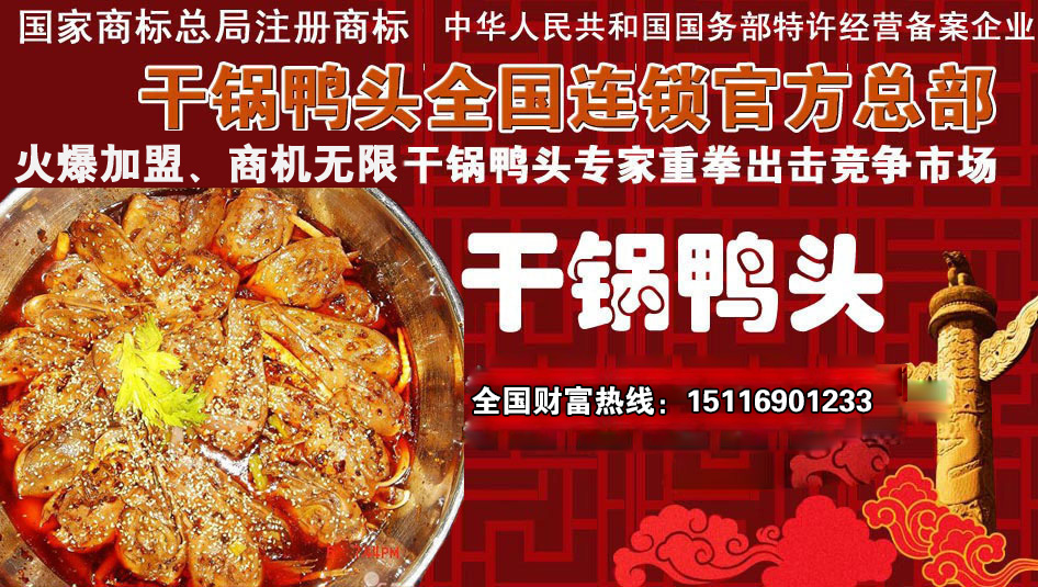 正宗干鍋鴨頭,一品渝香干鍋鴨頭,渝新干鍋鴨頭! 全國統(tǒng)一加盟熱線:15116901233